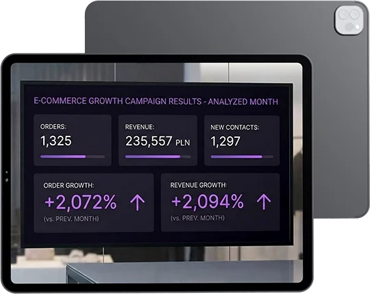 - kampanie sprzedażowe (m.in. Meta Ads, Google Ads), działania organiczne oraz automatyzacje.